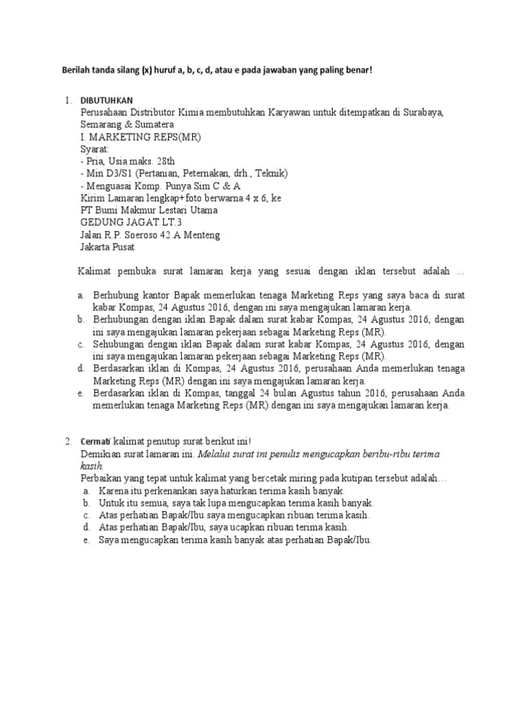 Berikut ini contoh surat lamaran kerja yang baik dan benar serta menarik perhatian yang dapat anda gunakan dalam tema maupun format penulisan surat. Baca contoh lainnya di >>> Berikut ini beberapa contoh pembuka surat lamaran yang bisa dijadikan referensi. Berikut ini contoh surat lamaran kerja yang baik dan benar serta menarik perhatian yang dapat anda gunakan dalam tema maupun format penulisan surat. Dengan demikian, jawaban yang tepat adalah e.